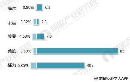 圖表9:2017年家電行業(yè)內(nèi)領(lǐng)先企業(yè)研發(fā)投入金額及占各自營業(yè)收入比重(單位:億元,%)