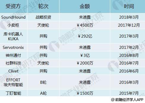 美的集團(tuán)發(fā)展方向逐漸轉(zhuǎn)為數(shù)字化2.0與美的工業(yè)互聯(lián)網(wǎng)生態(tài)平臺。為加強(qiáng)機(jī)器人及工業(yè)自動化領(lǐng)域的產(chǎn)業(yè)布局,培育新的增長點(diǎn)與產(chǎn)業(yè)平臺,美的集團(tuán)近年來有多起智能領(lǐng)域的投資事件,如下表所示。
