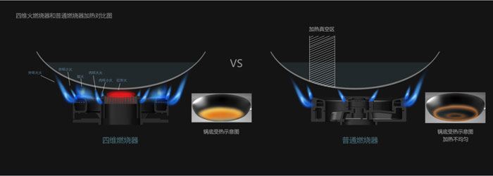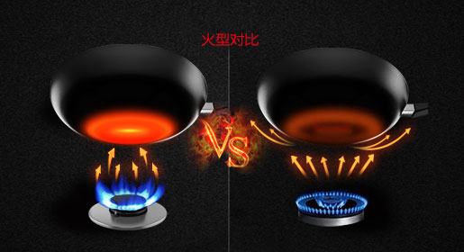 圖為三環(huán)火(左)比二環(huán)火(右)的鍋底溫度更加均勻