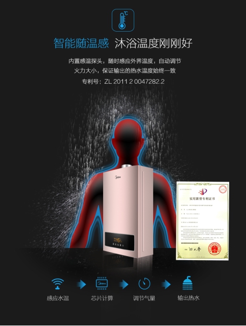 四季溫度變化,冷熱不均,熱水器也需要人性化的升級(jí),而美的“恒溫芯”熱水器,精細(xì)匠心,彰顯大師風(fēng)范。