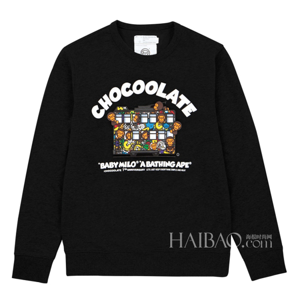 休閑品牌:Chocoolate曾于2011年與日本人氣潮牌安逸猿 (Bape) 的副線Baby Milo合作推出聯(lián)乘系列,反應(yīng)十分熱烈。2013年適逢:Chocoolate誕生7周年,品牌特意再度邀請(qǐng)Baby Milo及一眾Baby Milo的好友聯(lián)手推出聯(lián)乘系列。