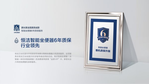 恒潔衛(wèi)浴在國內(nèi)行業(yè)中首創(chuàng)性地推出智能坐便器六年質保服務