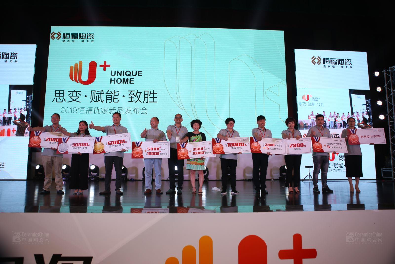 \u00A0\u00A02018年4月14日,以“思變?賦能?致勝”為主題的恒福陶瓷U+現(xiàn)代館新品發(fā)布會在中國?佛山三水綠湖溫泉酒店拉開序幕。匯亞集團董事長兼總裁冼明寬、匯亞集團副總裁兼恒福陶瓷總經(jīng)理陳海麟、常務(wù)副總經(jīng)理曹俊、銷售總監(jiān)段士波、徐迪宇、市場部總監(jiān)王艷、設(shè)計部總監(jiān)錢龍、產(chǎn)品部總監(jiān)熊宏等領(lǐng)導(dǎo)和全國核心經(jīng)銷商以及10多家行業(yè)媒體總計兩百余人參加了本次盛會。