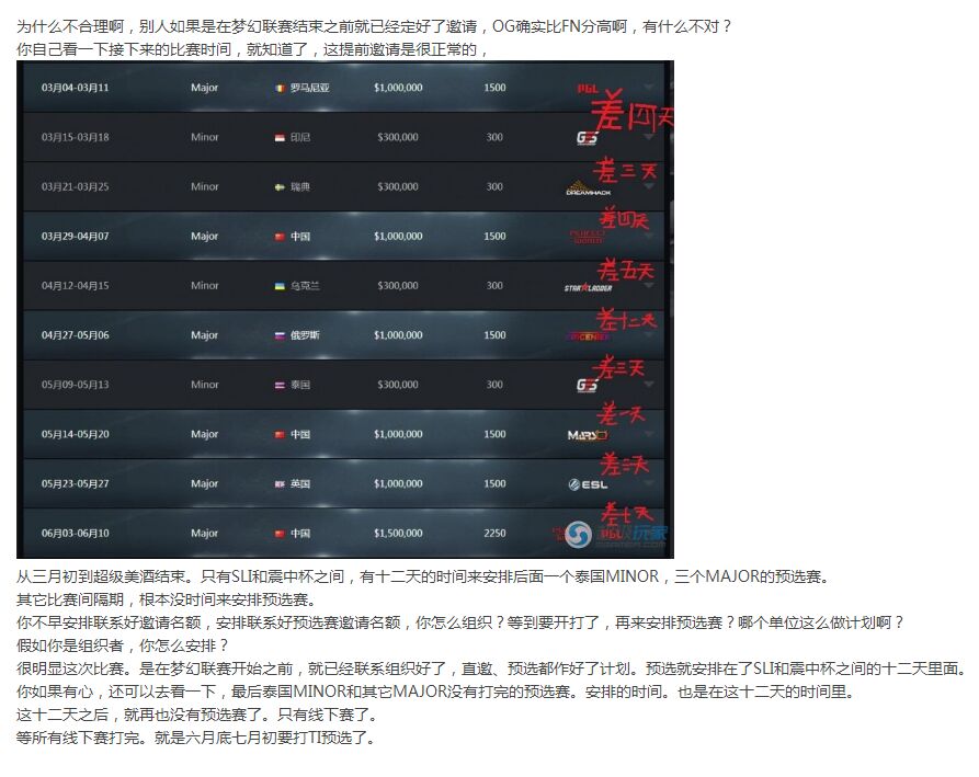 DAC之前因?yàn)镹avi和VP的換人,Navi積分在第八位,OG也是有積分的,所以官方的邀請還算有理有據(jù)。SG水友kinsep4對此也做了分析: