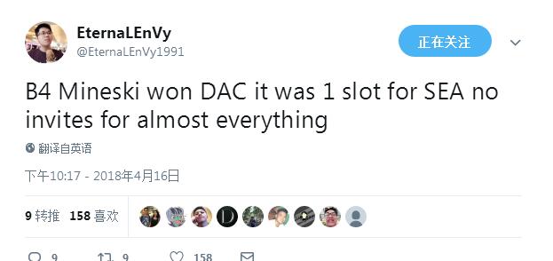 EE也多次表示,東南亞隊(duì)伍想要拿Ti積分比其他區(qū)都要難,很多比賽都對SEA東南亞賽區(qū)不夠重視,Mineski贏了DAC冠軍才給了東南亞一個邀請名額。