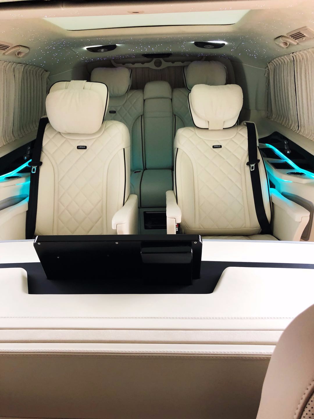 奔馳V260改裝隱藏7座內(nèi)飾,前后采用32寸可升降液晶電視隔斷式設計,展示了相對獨立的空間和氛圍感,同時又具備了隔音防噪效果。環(huán)繞式立體聲boss音響,高貴的鋼琴漆式隱藏式吧臺,風格獨特的游艇式豪華電子鐘表;再配以可變多彩的星光燈作以點綴,為您營造舒適中的奢享!