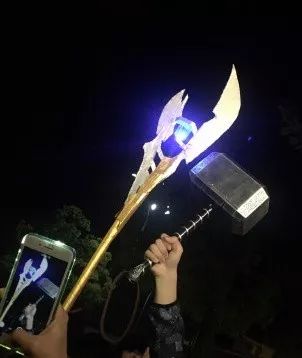 還有一位粉絲把自己“武裝”成大鐵錘,成了一個(gè)移動(dòng)的鐵錘……但是,她的愛(ài)豆雷神最后卻說(shuō)不來(lái)了,心疼……