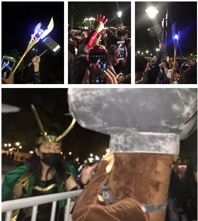 現(xiàn)場(chǎng)還不乏一些一看就是忠實(shí)粉的漫威迷,帶著cos自家愛(ài)豆的“武器”,也是real搶眼。