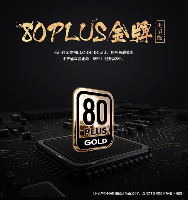 航嘉WD500K金牌電源經(jīng)過80PLUS金牌認(rèn)證