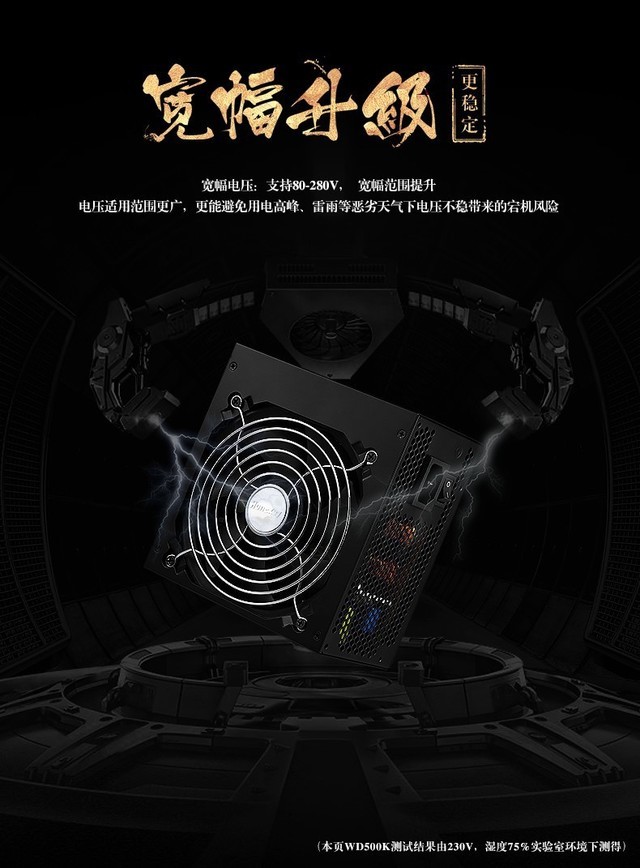 航嘉WD500K金牌電源采用80-280V寬幅電壓設(shè)計