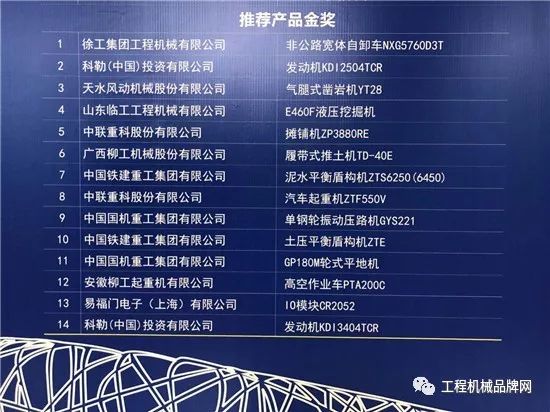 BICES 2017中國國際工程機械推薦產(chǎn)品金獎名單
