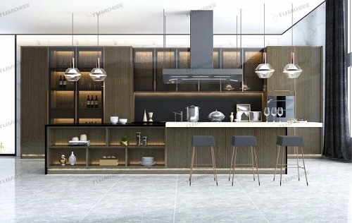 在架構(gòu)層面上則著重凸現(xiàn)了“空間+”的前沿理念,即實(shí)現(xiàn)有限空間的最大化使用率,從廚房達(dá)至餐廳,蔓及書房,形成整體櫥柜大鋪展、廣延伸的效果。