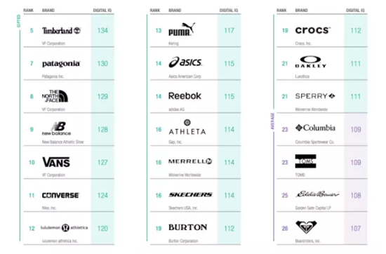 Gartner L2 的這份報(bào)告對(duì)在美國(guó)擁有業(yè)務(wù)的 74 家運(yùn)動(dòng)裝備品牌的數(shù)字化服務(wù)能力進(jìn)行分析。所謂的“數(shù)字智商(Digital IQ)”是 Gartner L2 提出的一個(gè)概念。