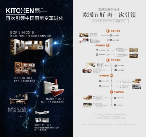 創(chuàng)新精神是決定企業(yè)壽命的關鍵,一成不變的概念和產品是留不住客戶的。歐派櫥柜和摩拜一樣,一直讓創(chuàng)新精神伴隨而行。早在1994年,歐派櫥柜就率先將歐洲“整體廚房”概念引入中國,開創(chuàng)了中國工業(yè)化現代櫥柜的先河,被譽為中國“廚房革命”的倡導者。在隨后的20多年里,歐派櫥柜更是不斷推出創(chuàng)新概念贏得市場的主動權。1998年,歐派在全國率先提出“貨比十家”的誠信營銷理念,承諾八年持久保證的金卡服務;2000年,“櫥柜電器一體化”是歐派人向新世紀致敬的一份厚禮;2003年,歐派“全國電腦互聯設計系統”和“訂單管理系統”同步在全國推出,實現歐派櫥柜全過程信息化管理;2017年,歐派重磅推出“櫥柜+五大系統”,告別簡陋廚房,提供全套廚房生活解決方案,強勢掀起櫥柜品質革命;2018年,歐派正式推出櫥柜+“五大系統、三大空間”核心理念,全面升級企業(yè)理念和產品,重新定義中國廚房的功能配置、空間布局、生活體驗,創(chuàng)造一站式全配、一體化設計、一口價消費的餐廚生活定制新模式。