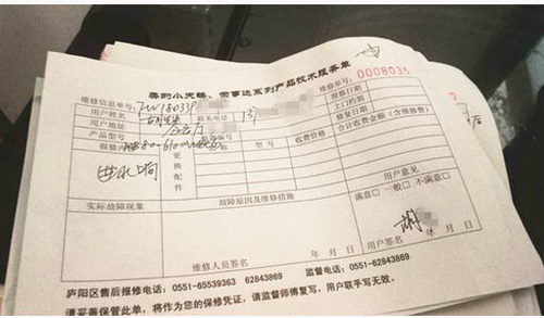 備注:前三次維修,售后人員都將維修單收走,僅留下一張維修單;且維修單不填寫(xiě)維修日期和詳細(xì)維修情況。