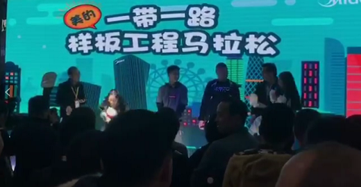 眾所周知“美的中央空調”作為全球領先的暖通空調企業(yè),在深入貫徹國家提倡可持續(xù)發(fā)展路線的同時,還積極參與國家級頂層合作倡議---“一帶一路”,同樣在本次展會中,結合美的中央空調的為沿線國家地區(qū)提供專業(yè)的空氣環(huán)境的解決方案,為了深入貫徹國家提倡的一帶一路政策,趣動傳媒也帶來了專門為美的中央空調量身打造的大型互動場景游戲---一帶一路版馬拉松,掃描屏幕中二維碼即可參與游戲,游戲開始,屏幕上的小人會沿著美的中央空調去過的國家奔跑,領先的小伙伴們還有會美的中央空調的神秘大禮
