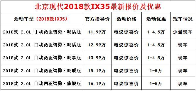 【北京現(xiàn)代IX35五一親民回饋 觸底價格裸車可分期售】重大喜訊!開春送好禮!本店為贏得本年第一季度銷量任務(wù),特推出北京現(xiàn)代2018款I(lǐng)X35限時特降惠全國活動,過時不候!現(xiàn)車最高優(yōu)惠高達(dá)5萬元!本次活動將特賣福利、禮包福利、增值福利、車價讓利福利等融為一體,讓消費(fèi)者享受到實(shí)實(shí)在在的優(yōu)惠和誠意,活動期間只售裸車,無任何捆綁銷售。商業(yè)全險可自愿選擇辦理或不辦理,購車提前一天電話預(yù)約【送價值1.8萬自選裝飾禮包和神秘店內(nèi)禮包】報銷2-3人來京路費(fèi)(需憑票據(jù))現(xiàn)店內(nèi)現(xiàn)車充足,顏色齊全,銷售全國,無區(qū)域限制,手續(xù)齊全(發(fā)票,合格證,車輛一致性證書,PDI檢測證書,保養(yǎng)手冊,三包憑證)全國各地均可落戶上牌,全國聯(lián)保,所有手續(xù)隨車走,歡迎各位車友到店詳談購車,銷售熱線見文章底部↓\u00A0