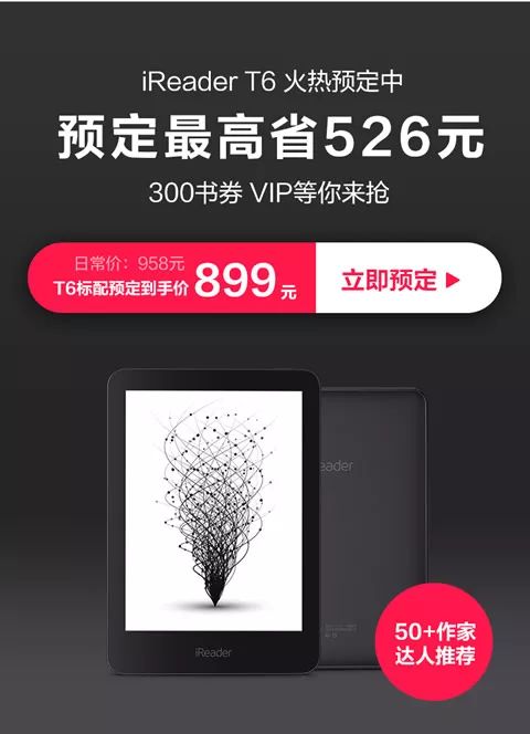 iReader T6售價958元,4月23日首發優惠59元,降為899元;并且,為慶祝4月23日世界讀書日,掌閱還準備了300元書券、6個月延保卡、原裝皮套等禮品。
