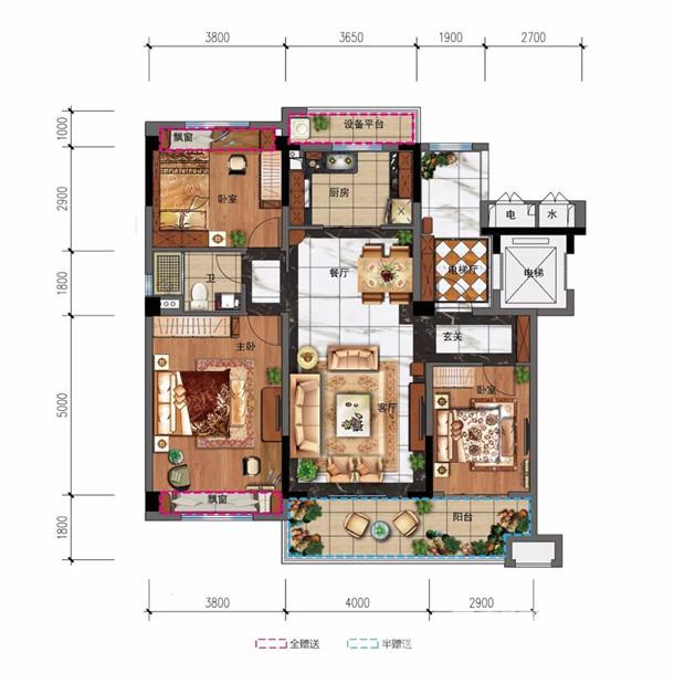 多房朝南,闊景陽臺接連次臥;