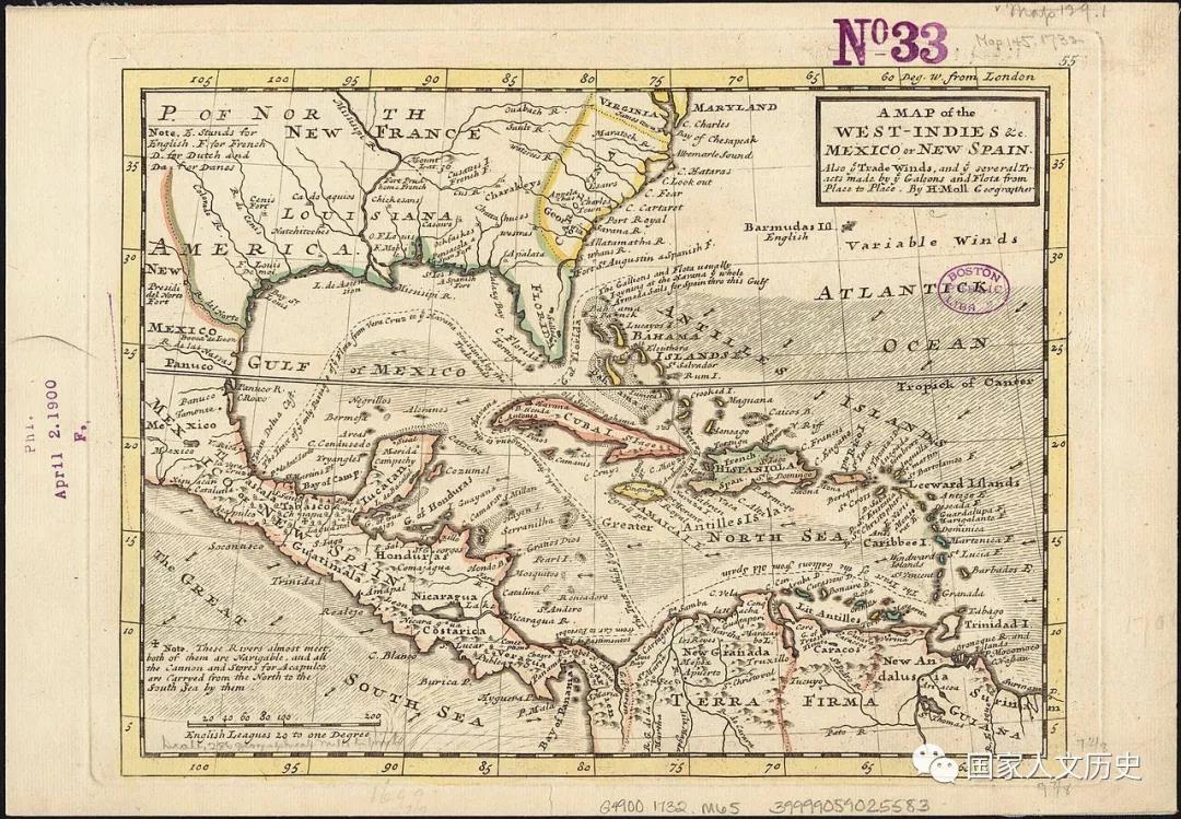 新西班牙(墨西哥)以及西印度群島,Herman Moll 制圖于1736年