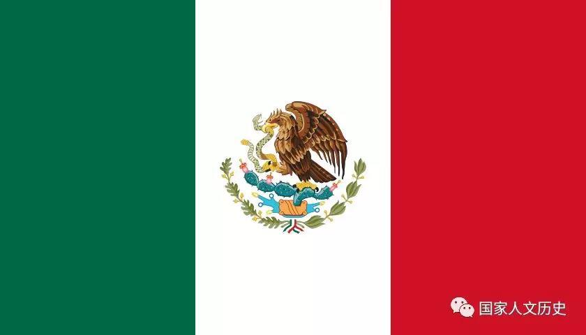 墨西哥國旗,其中間的國徽就是一只鷹口叼一條蛇立于仙人掌之上