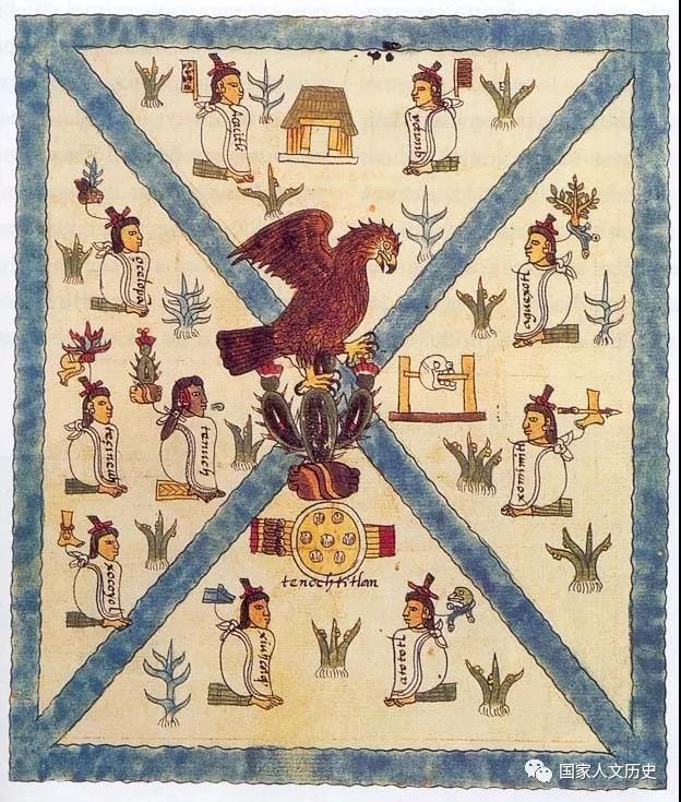 墨西哥的國名也恰好體現(xiàn)了這一點(diǎn),México這個詞源于納瓦特語,意為“爭辯、討論”,最初指的是阿茲特克人的首都墨西哥-特諾奇蒂特蘭(México-Tenochtitlan),特諾奇蒂特蘭本身意為“石頭上長著仙人掌之地”。傳說中阿茲特克人的酋長帶領(lǐng)著被強(qiáng)大部落奴役的子民向南遷徙,神指示他們當(dāng)看到一處地方有一只鷹叼著一條蛇站在仙人掌上,這便是他們?nèi)蘸蠓毖苌⒅兀@里就是特諾奇蒂特蘭,也是現(xiàn)在墨西哥首都墨西哥城所在地。據(jù)說西班牙殖民者科爾特斯第一次見到特諾奇蒂特蘭時,這里已經(jīng)是一座擁有著20萬到30萬人口的大城市。