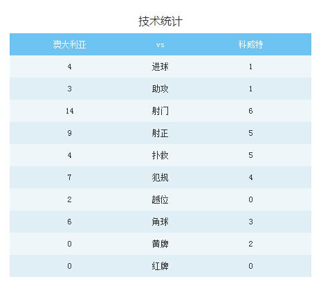 澳大利亞4-1科威特技術(shù)統(tǒng)計
