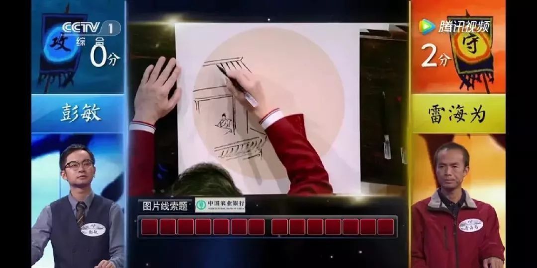 彭敏和雷海為對(duì)戰(zhàn)的前面三題是看圖說詩。但彭敏太過著急,剛開局,就白白送了雷海為兩分。