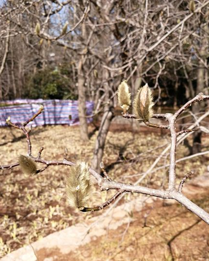 玉蘭花樹上已經(jīng)滿是花蕾。