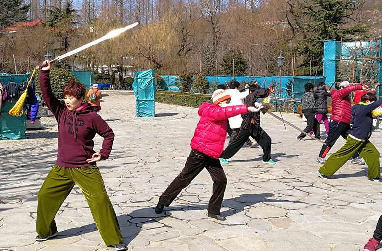 晨練的人們也開始慢慢脫下厚重的棉服。