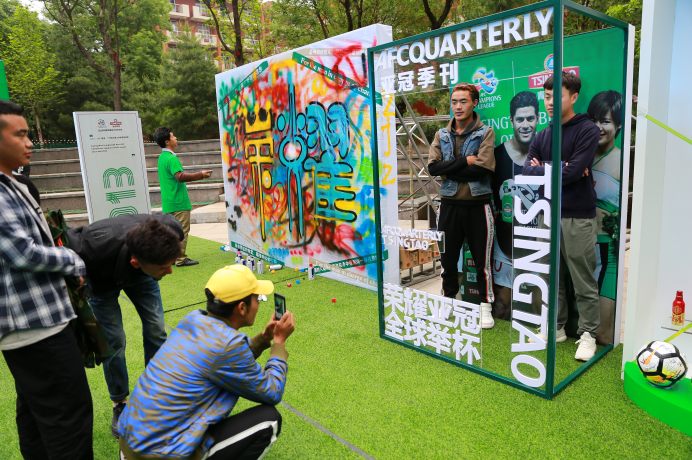 現場除了各項足球競技互動游戲外,大受球迷熱愛的青島啤酒亞冠啦啦隊也再次燃起了現場同學們的熱情,洗去了當日一籌莫展的陰霾,立刻變身一場青春的盛宴;彰顯年輕和自我的態(tài)度涂鴉墻也瞬間變成了同學們抒發(fā)情感的聚集地,他們用自己的即興創(chuàng)作展現對足球的理解和對青春的揮灑!