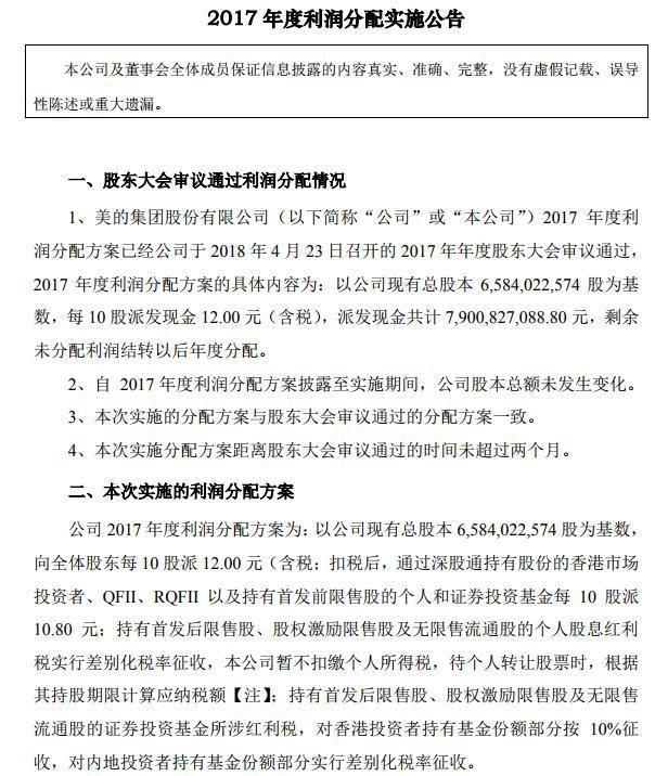 巧合的是,美的也在4月25日發(fā)布了2017年利潤分配實施公告,公告顯示2017年美的集團將進行10派12現(xiàn)金的分紅方案。但長期來看,美的集團在2013年重新上市以來的分紅率為31.7%,低于格力電器40.96%的分紅率。
