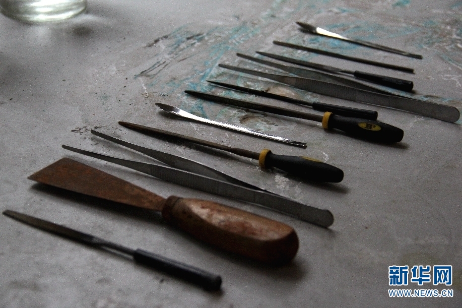 “文物醫(yī)生”使用的各類工具。新華網 念新洪 攝