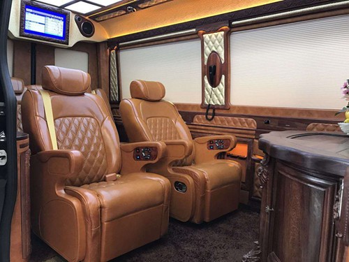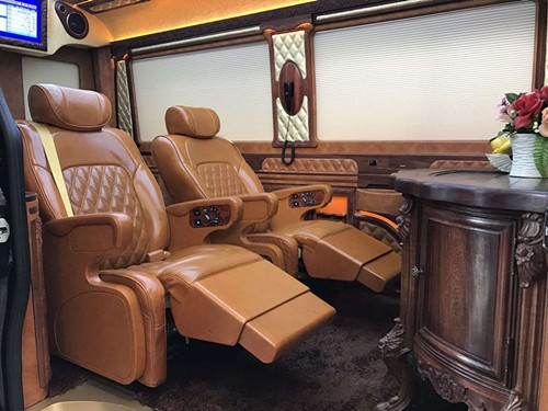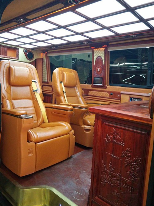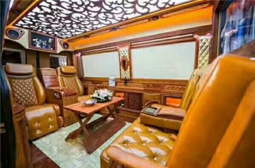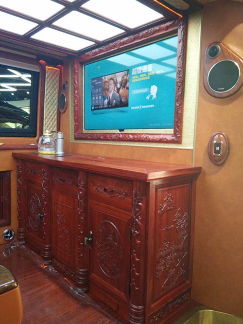 奔馳斯賓特總裁版房車(chē)后部巧妙地設(shè)置了可電動(dòng)升降,結(jié)束工作會(huì)完貴賓的休憩港灣,按摩座椅與后部設(shè)置了門(mén)簾。酒柜加水晶杯的組合、恒溫?zé)崴畨亍⒈涞人屑矣秒娖鳎屇S時(shí)隨地愜意享受。乘客艙倉(cāng)的電器設(shè)備開(kāi)關(guān)及調(diào)節(jié),可由設(shè)置在吧臺(tái)的后艙觸摸中控屏控制,也可通過(guò)ipad的APP便捷控制。
