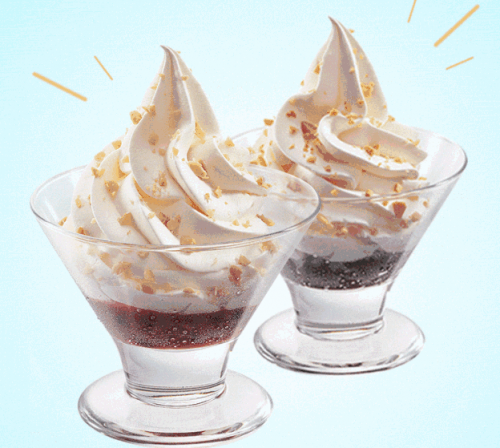 現(xiàn)磨豆?jié){制成的霜淇淋,與烘烤后的松脆威化蛋筒相遇,一種甜蜜的回憶,帶著心跳的故事,藏進(jìn)了蛋筒形霜淇淋的清甜里。只溶在口的甜蜜心情,勾起幸福的唇角。