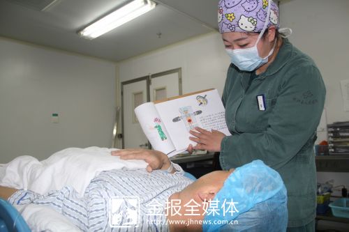 她決定為病人做些事,努力緩解他們在進(jìn)入手術(shù)室時的緊張情緒。怎么樣去緩解患者的情緒呢?今年,陳蓉菁所在的科室里進(jìn)行了一項探索,推出了“牽手關(guān)愛”護(hù)理品牌,目的是讓病人了解手術(shù)過程,順利配合手術(shù)完成。