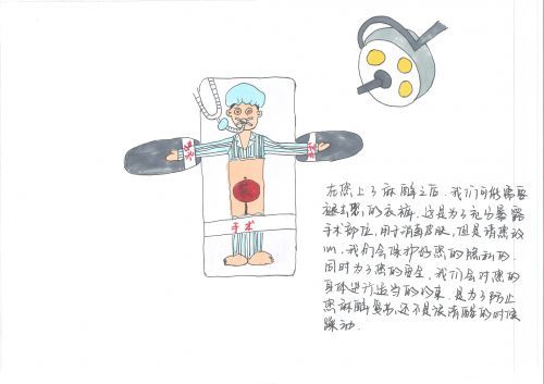 想要改變手術(shù)室很可怕的第一印象,還得有接地氣、容易接受的方式。于是,少女心的她想到了漫畫,萌生了以卡通漫畫的方式來介紹手術(shù)室的想法。“我平時就很喜歡畫畫,相比偶像劇也更喜歡看動畫片。有時候心情不好,畫一畫萌萌噠卡通形象,心里就舒暢放松了。”