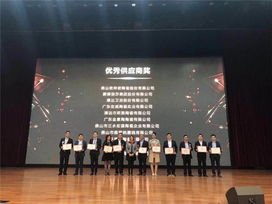 據(jù)會議介紹,碧桂園集團優(yōu)秀供應商評定,需根據(jù)區(qū)域、項目,對供應商過去一年的質量、貨期、服務等多維度成績進行綜合評估,并在會上公開評分排名。在碧桂園集團9000多家供應商中,僅有84家獲獎,歐神諾陶瓷以出色的綜合評分榮膺2017年度碧桂園集團“優(yōu)秀供應商”。