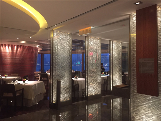 別致的銀箔天花襯托出璀燦奪目的維港景色。