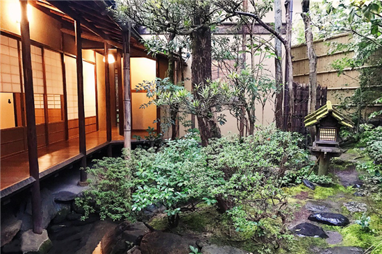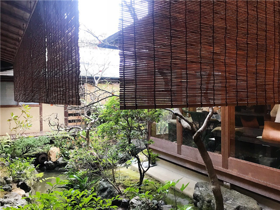 餐廳內(nèi)是富有傳統(tǒng)日式風(fēng)味的流水長廊園林,