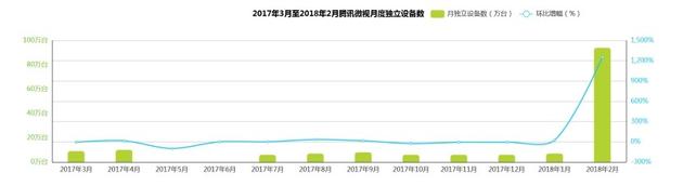 微視2017年3月-2018年2月騰訊微視月獨立設(shè)備數(shù)(艾瑞App指數(shù))