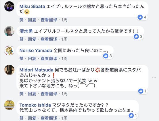 大部分粉絲都表達(dá)了類似的想法,“雖然知道多半是假的,但要是真能實現(xiàn)就太棒了”。結(jié)果,五天之后,星巴克突然再次發(fā)出活動預(yù)告,這次還將活動時間、地點等重要信息都列了出來——4月12日至4月15日,代官山T-SITE見。這么看來,這個當(dāng)初讓人心心念念的假消息,竟然瞬間變成了板上釘釘?shù)氖聦崳俅稳计鹆朔劢z們對這間“快閃大棚”的無限憧憬。