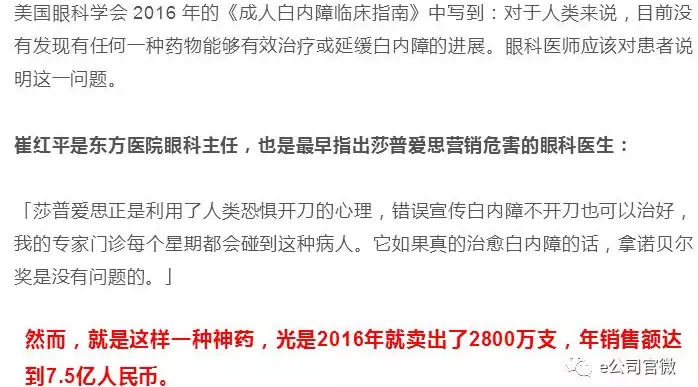 莎普愛思如真能治愈白內(nèi)障,拿諾貝爾獎(jiǎng)是沒有問題的