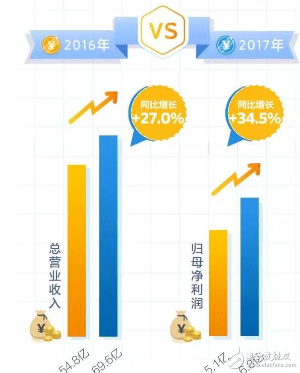 歐普照明4月17日晚間公布了2017年度業(yè)績(jī)報(bào)告。年報(bào)顯示,2017年,歐普照明實(shí)現(xiàn)營(yíng)業(yè)收入69.57億元,同比增長(zhǎng)27.03%;實(shí)現(xiàn)利潤(rùn)總額8.01億元,同比增長(zhǎng)32.44%;實(shí)現(xiàn)歸屬于上市公司股東的凈利潤(rùn)6.81億元,同比增長(zhǎng)34.48%。