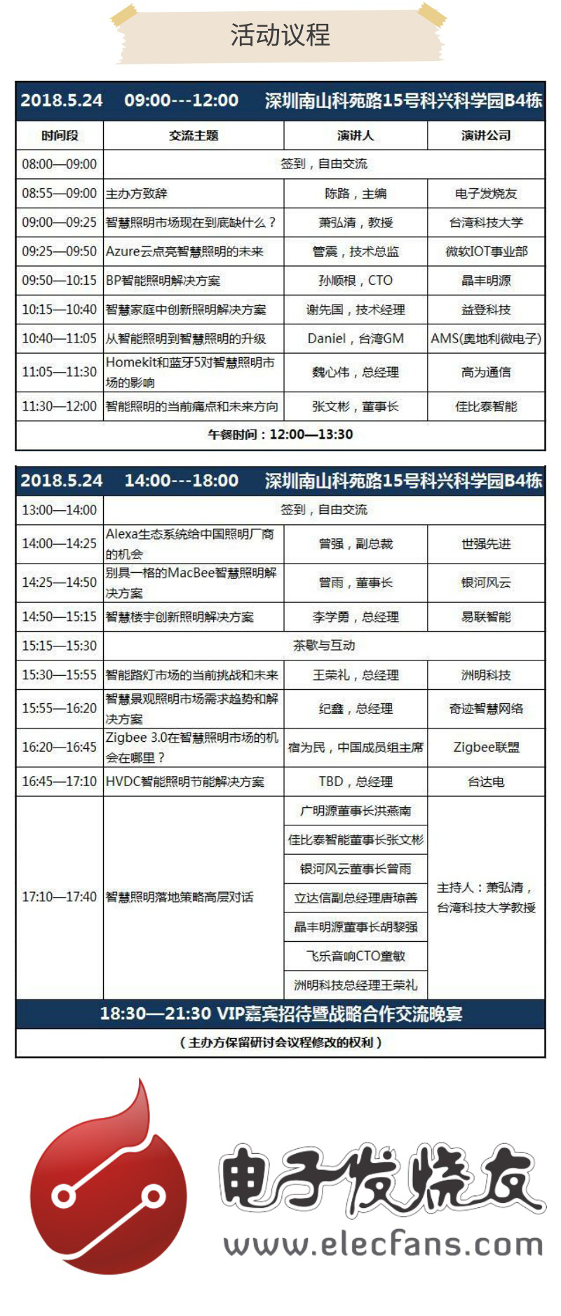 請(qǐng)對(duì)智慧照明產(chǎn)業(yè)鏈、芯片、解決方案感興趣的公司高管、工程師、采購(gòu)經(jīng)理和產(chǎn)品經(jīng)理等專業(yè)人士查看下面議程和點(diǎn)擊微信二維碼報(bào)名,我們收到報(bào)名信息后,將會(huì)確認(rèn)預(yù)留席位。