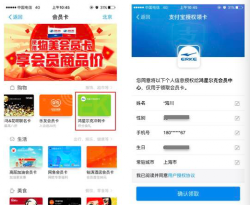 為了配合支付寶活躍自己的會員,拉動新用戶和復(fù)購率,翼碼將鴻星爾克會員卡推上了支付寶卡包的首頁前列,并打通了與支付寶的數(shù)據(jù)共享,實現(xiàn)支付寶會員的捆綁推動。
