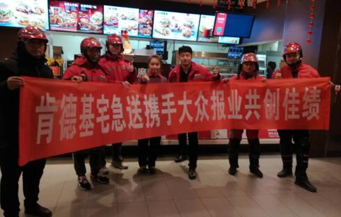 當(dāng)城市都沉浸在喜氣洋洋、闔家團圓的春節(jié)氛圍里,山東大眾報業(yè)集團發(fā)行有限公司的所有員工,精神煥發(fā),整裝待命。當(dāng)他們將一份份熱騰騰的全家桶送到客戶家中的時候,當(dāng)他們將一對對香噴噴的雞腿送到客戶手中的時候,當(dāng)他們一次次接收到來自客戶真誠感謝的時候,寒風(fēng)刺骨,也無法消減他們的工作熱情;暮色沉沉,亦無法遮擋他們的砥礪前行。春節(jié)七天,他們圓滿的完成了肯德基的外賣配送工作,合計配送2400余單。