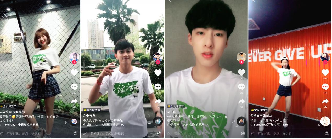 就在佘詩曼、梁烈唯發(fā)微博不久,抖音紅人“小蔡磊”“于桐”立即應援,爭當“綠活達人”,先來一段手勢舞,再跑一場馬拉松,這是兩位抖音美男的“綠活態(tài)度”。而另兩位抖音紅人 “辛德瑞拉熊熊熊”和“楊豆豆”的綠活態(tài)度則是舞動起來,做一位元氣少女!