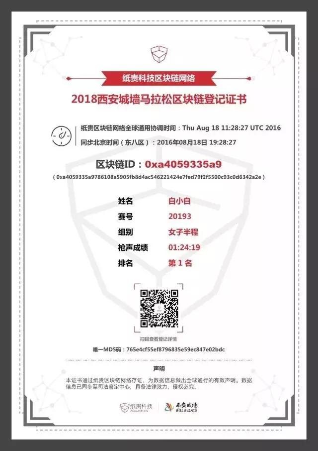 本次發(fā)布會(huì)現(xiàn)場發(fā)布由陜西音樂廣播On Air樂隊(duì)為城墻馬拉松制作《閃耀西安,讓愛奔跑》的原創(chuàng)歌曲為賽事主題曲,并組織4000名群眾在賽道間展示西安傳統(tǒng)武術(shù)、秦漢鑼鼓、皮影、剪紙等表演。將城墻國際馬拉松以閃耀的姿態(tài)傳遞給全世界,文藝范兒十足。另外本屆賽事也創(chuàng)新融入硬科技元素,獨(dú)創(chuàng)性地引入了區(qū)塊鏈技術(shù),將運(yùn)動(dòng)員比賽數(shù)據(jù)信息登記到區(qū)塊鏈上,同時(shí)為所有運(yùn)動(dòng)員頒發(fā)全球首張馬拉松區(qū)塊鏈完賽證書,利用區(qū)塊鏈的加密屬性有效保證跑者個(gè)人比賽成績的永久可靠性。目前將該技術(shù)用于馬拉松賽事中在全球范圍尚屬首例,城馬將成為全球馬拉松區(qū)塊鏈技術(shù)應(yīng)用的首發(fā)賽事。組委會(huì)還將邀請100位西安科技的代表人物,組成“西安科技領(lǐng)跑團(tuán)”,讓科技領(lǐng)跑城馬。