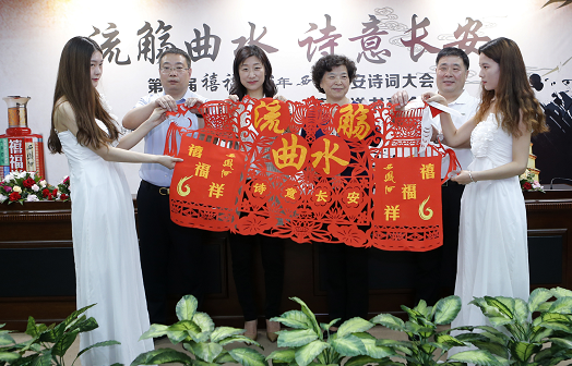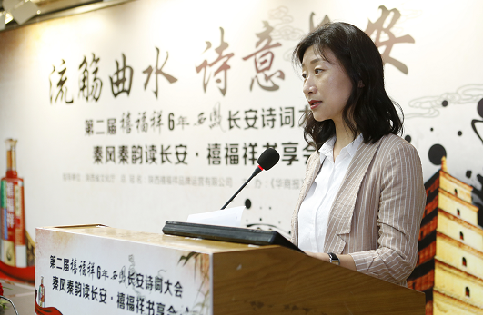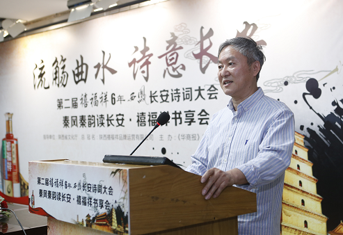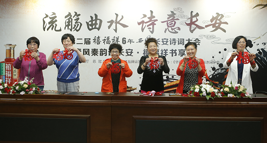 活動現(xiàn)場,由陜西省文化廳公共文化處副處長張智林、陜西省詩詞學(xué)會秘書長王小鳳、華商報社總經(jīng)理聶保剛、陜西禧福祥品牌運營有限公司副總經(jīng)理邊瑞濤共同為活動啟幕。